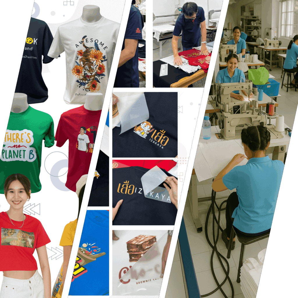 เป็นโรงงานที่เชี่ยวชาญในการผลิตสินค้าพรีเมี่ยม กระเป๋าผ้า ถุงผ้าหูรูด สกรีนเสื้อ เสื้อทีม เสื้อยืดสีพื้น เสื้อยืดแขนสั้น เสื้อโอเวอร์ไซส์ เสื้อยืดแขนสั้น เสื้อพิมพ์ลาย เสื้อยืดผ้า TK เสื้อโปโล เสื้อพนักงาน ราคาโรงงาน สกรีนด้วยระบบดิจิตัล ซิลค์สกรีน (Silk Screen) งานสกรีนซับลิเมชั่น งานสกรีน DTF รับสกรีนงานทุกชนิด
